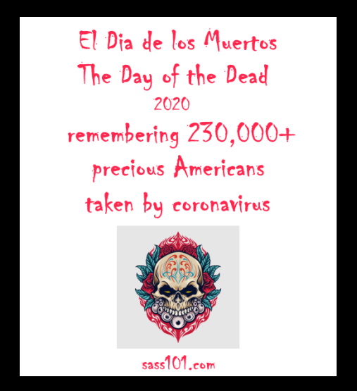 Sass Dia Muertos scary skull teeth on white bit bigger red text black border 110120